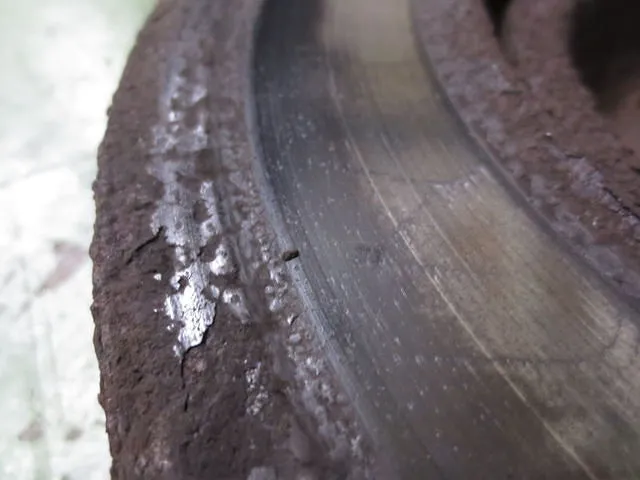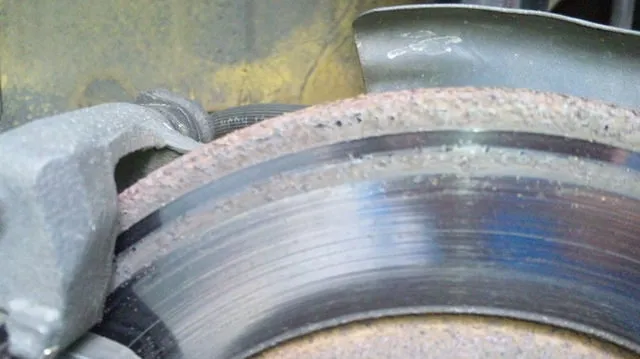 また写真のようにブレーキローターが摩耗している場合は、ローターの研磨や交換が必要になります。